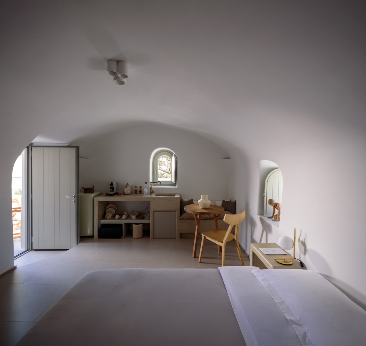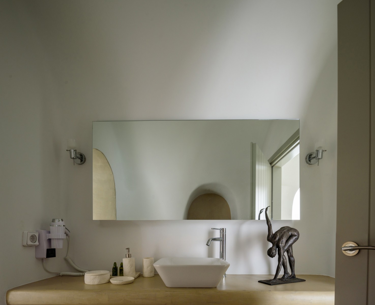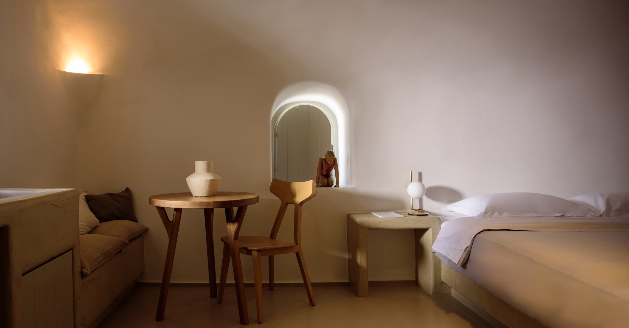 Cycladic architecture prevails in this lovely accommodation option, featuring a comfortable double bed with sitting area and a kitchenette. The traditional bathroom with built-in shower completes the interior, along with unique creations by awarded Greek artists that underline the minimal yet eclectic décor. Outdoors, guests are welcome to soak under the sun and take in that precious island’s vibe from their private patio with sun loungers, while there is also smooth and undisturbed access to a private swimming pool.