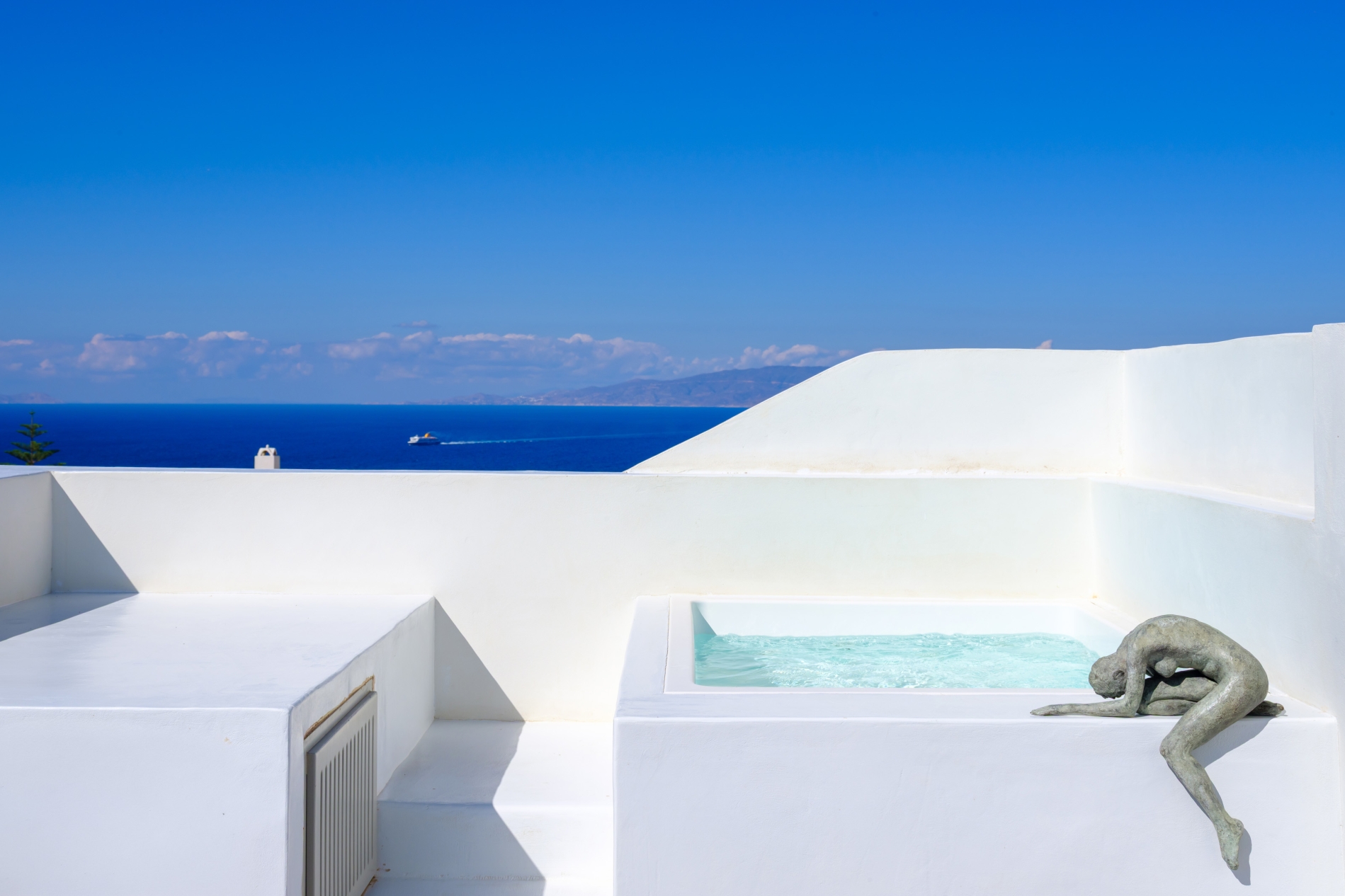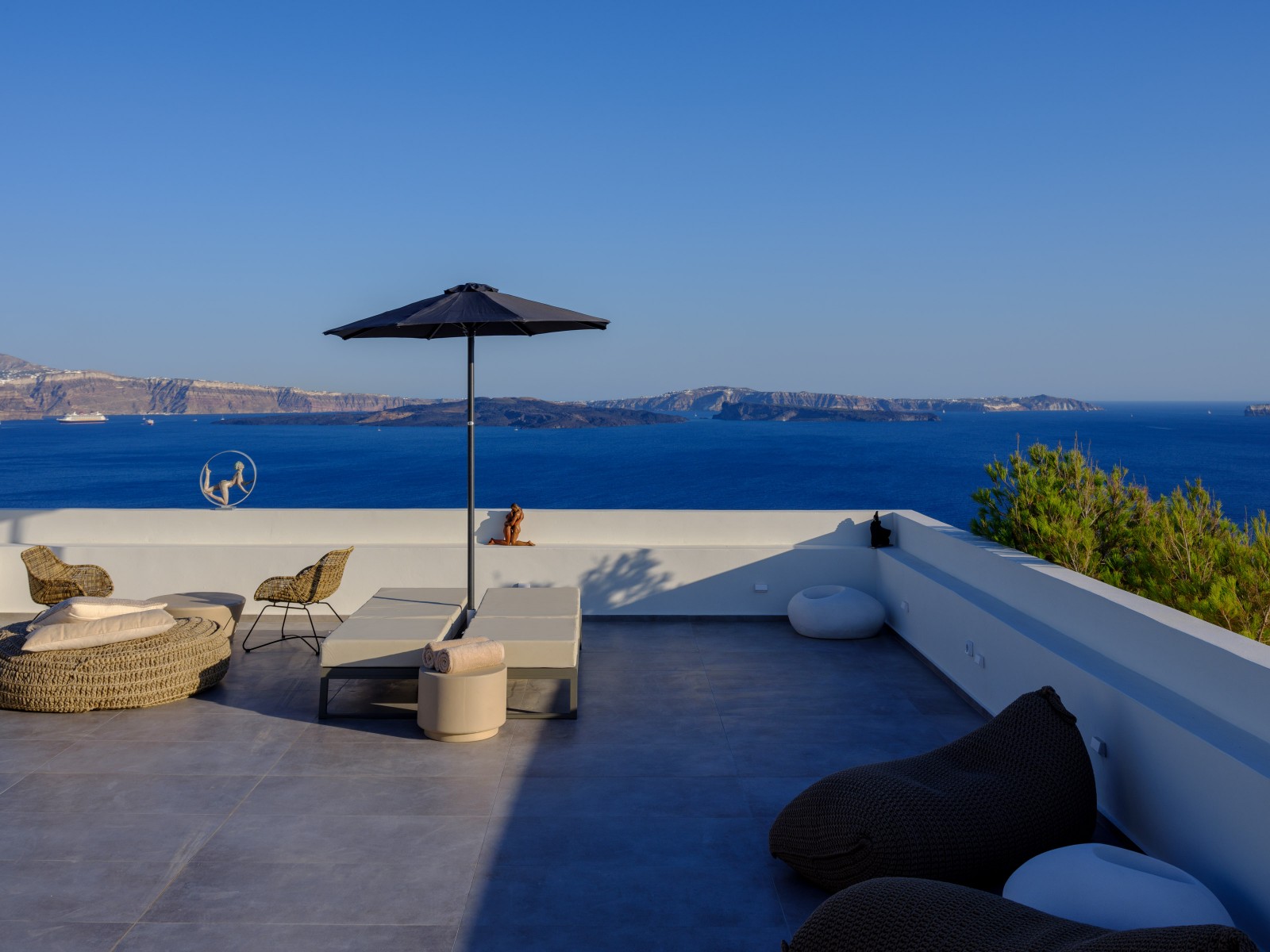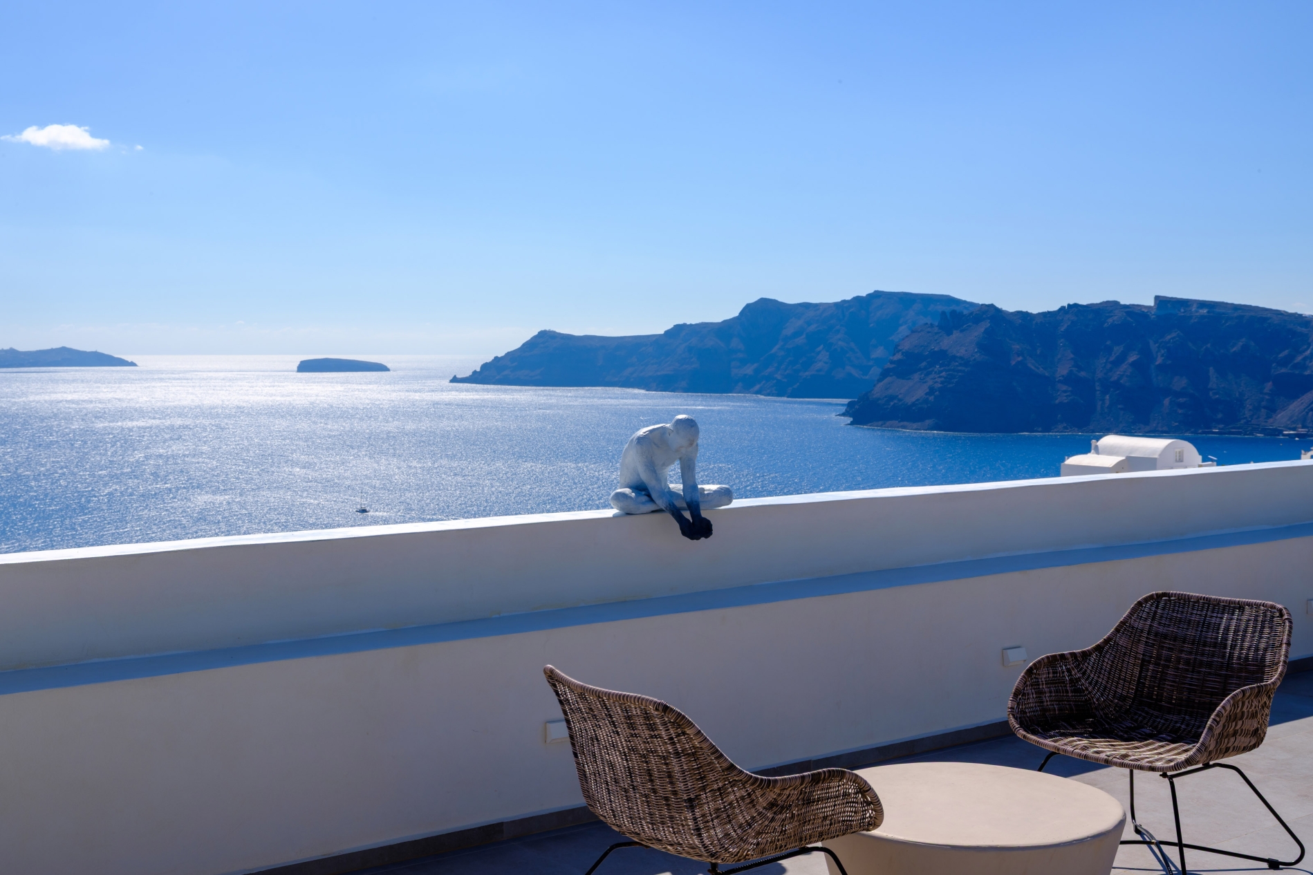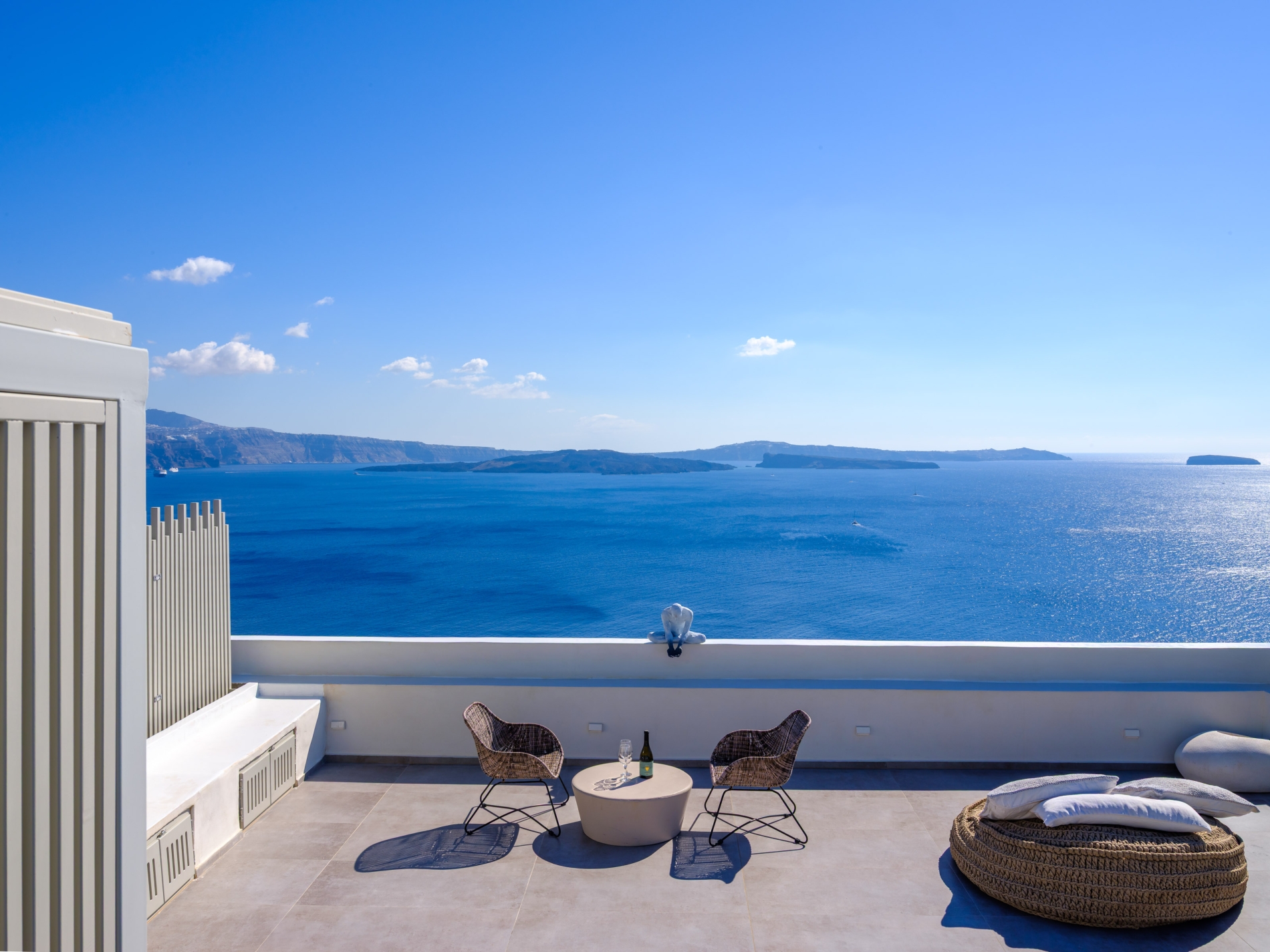 Elevate your escape in the Loft Panoramic Small Suite, where every moment frames Santorini’s iconic spectacle: a dramatic sunset unfurling over the Caldera from your expansive private terrace with outdoor jacuzzi. The compact yet elegant interior creates an intimate cocoon—perfect for two—while beyond its walls, the Aegean Sea stretches infinitely under the glowing sky. It’s not just a stay—it’s your front-row seat to the legendary magic of Oia.