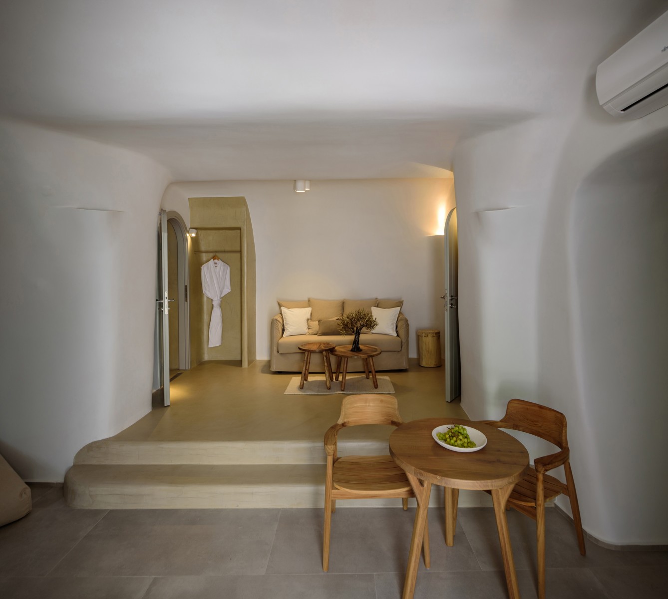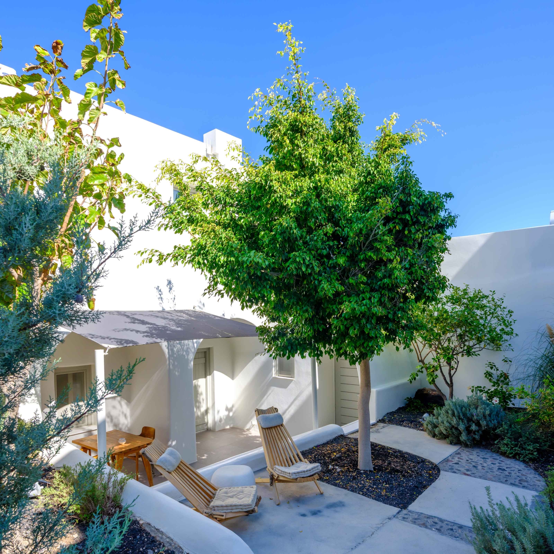 In search of a splendid accommodation option where Cycladic aesthetics are blended with modern comfort? An ample space carved traditionally to align with the island’s special architecture, welcomes you. “Orbit” features a Jacuzzi indoors, where you may refresh your body and soul in an uplifting atmosphere. It opens to a well-hidden Mediterranean garden, which awaits you to enjoy the scents of primrose and lavender and the gentle chirping of birds. All in complete and undisturbed privacy.